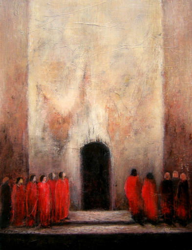 I tried to translate these images into our present time, first I did so in more abstract paintings, but gradually more figurative elements entered in my work.The images are representing encounters which include the spiritual dimension as far as my imagination goes. Often in doubt I work until I recognize something that satisfies me.